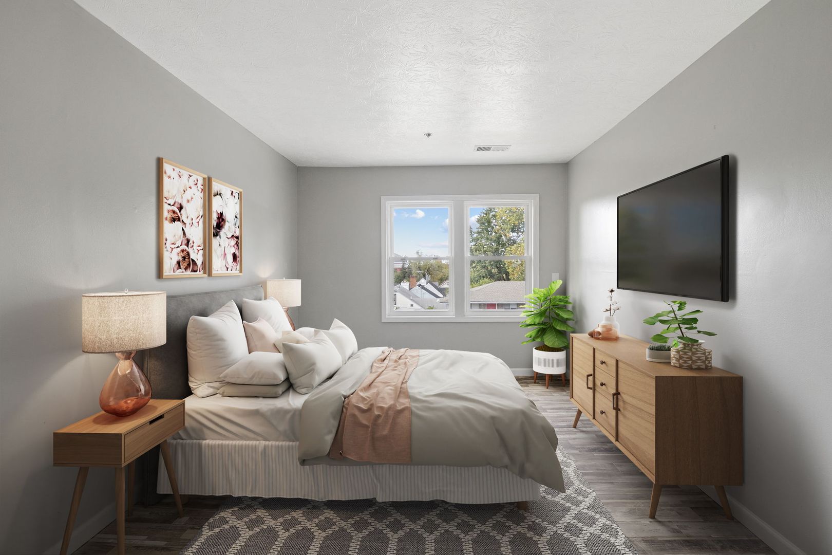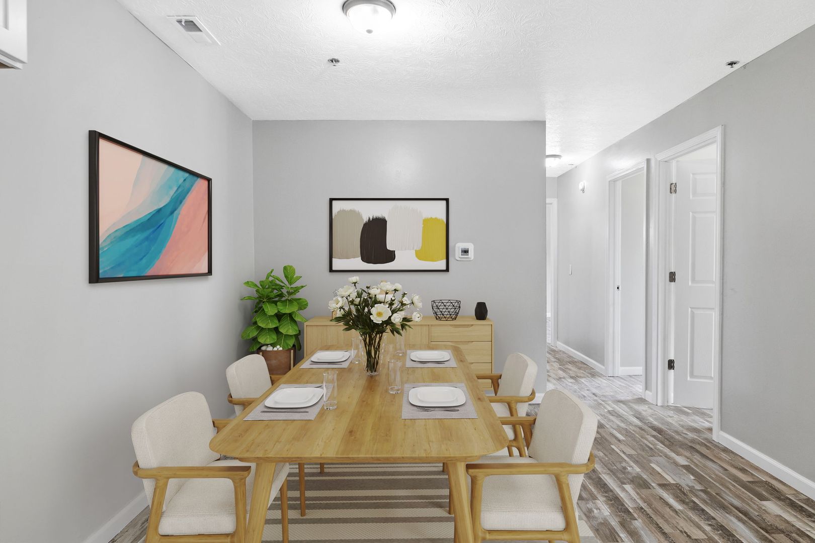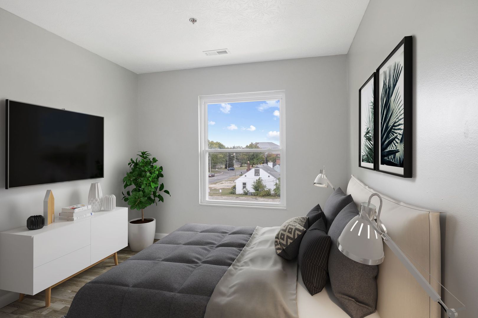 Welcome to our newly renovated District on Bethel - South Tower, where you'll find exquisite 3-bedroom, 2-bathroom units. These units are thoughtfully designed to provide a comfortable living experience. Step into a world of modern aesthetics as these units boast brand-new vinyl flooring, stylish kitchen cabinets, pristine windows, a rejuvenating bathtub, a sleek toilet, and an elegant vanity.